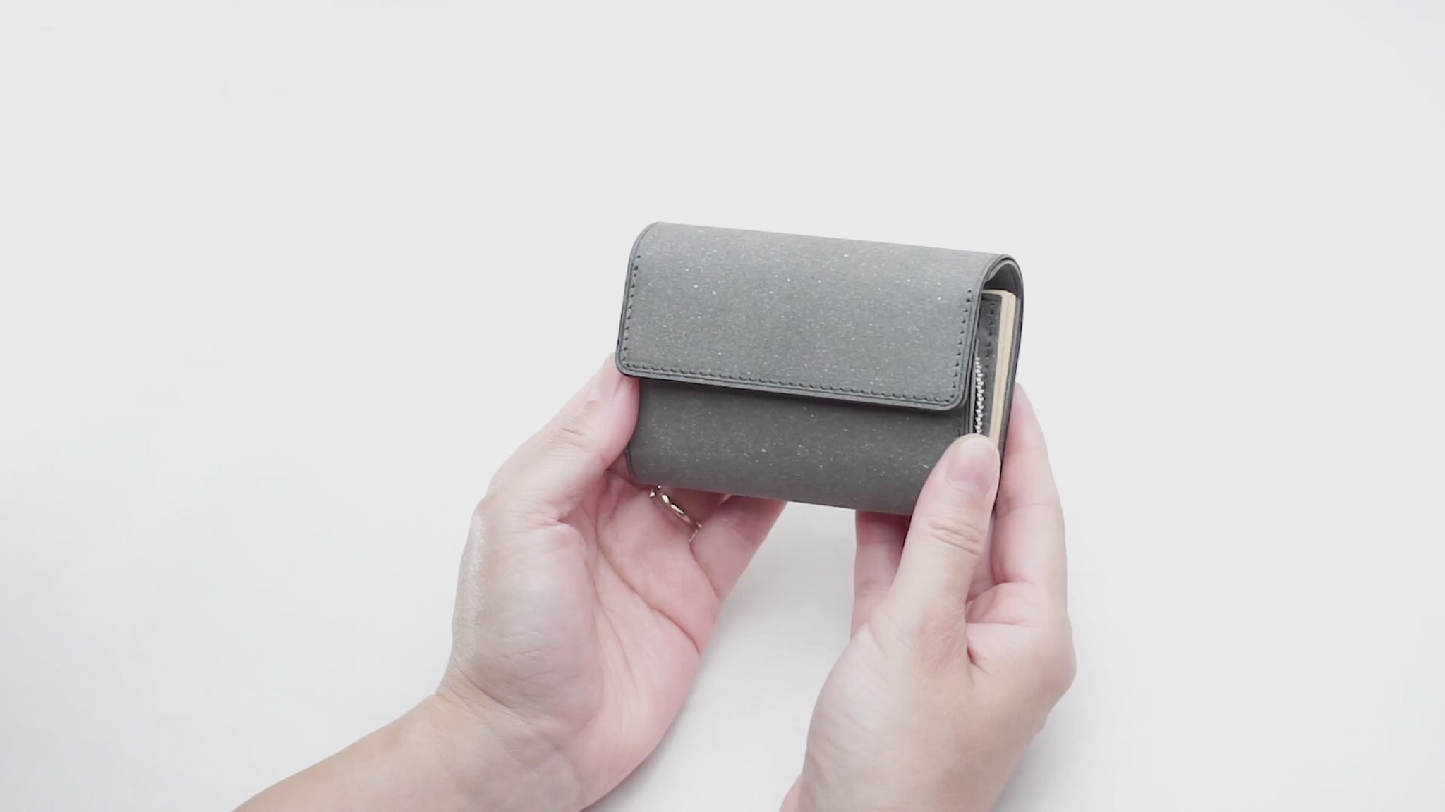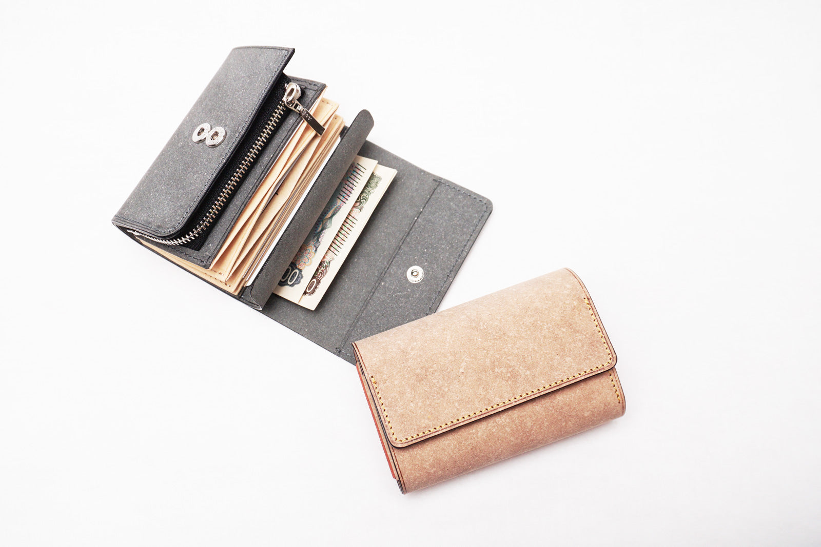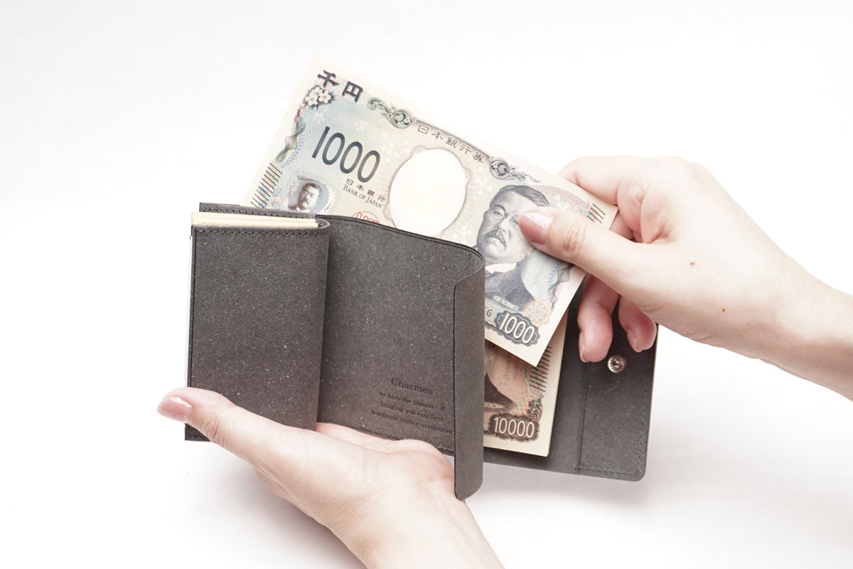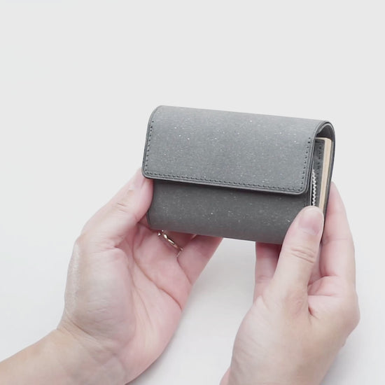 手のひらにすっきり収まる、ころんとしたシルエットの三つ折り財布。 コンパクトながら、カードを小分けに収納できるポケット付きで、中身が整理しやすく取り出しもスムーズです。小銭は見やすいマチ付きのファスナーポケットに、紙幣は出し入れしやすいアオリ構造で快適に。毎日の使いやすさも考えたデザインで、持ち歩くたびに心地よさを実感できる個性派ウォレットです。
