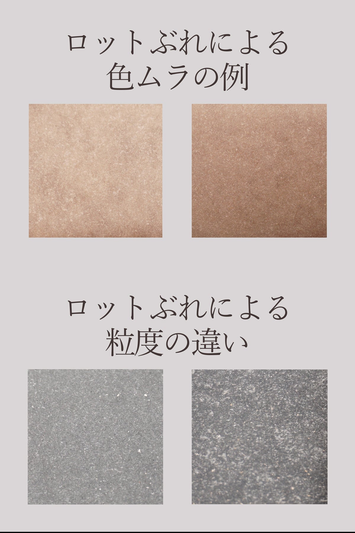 本シリーズの素材につきまして、特性上、製造ロットごとに色味や質感に微妙な差異(ロットぶれ)が生じる場合がございます。